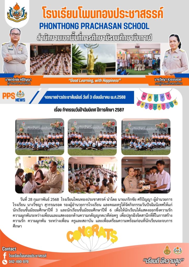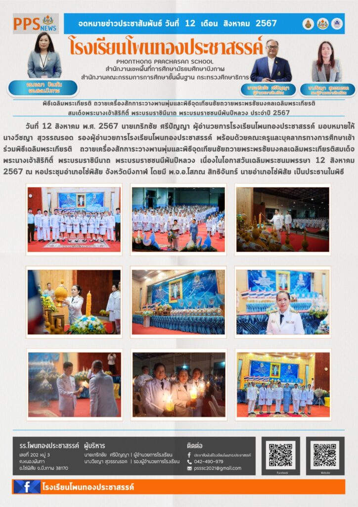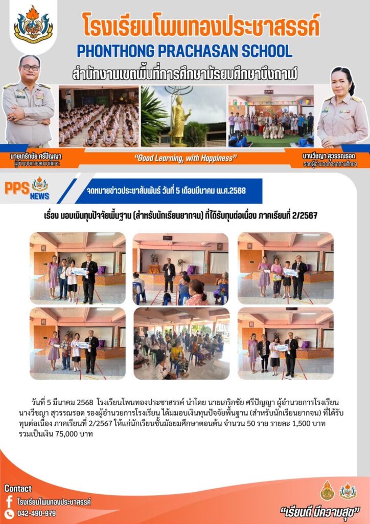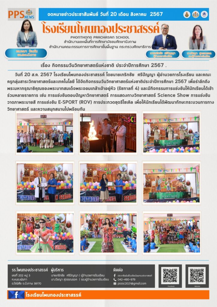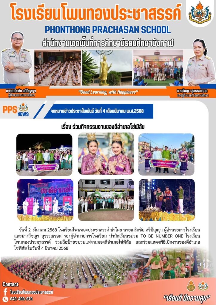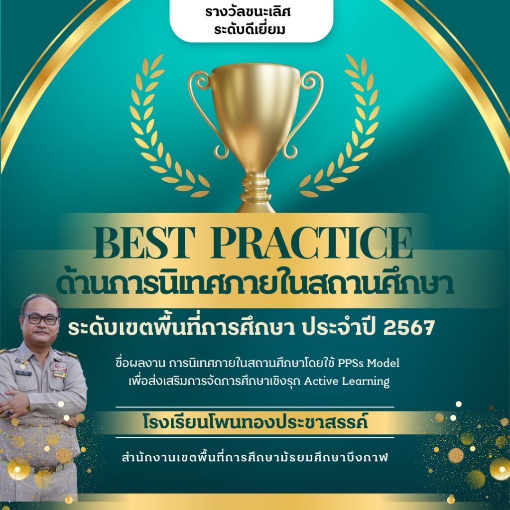 โรงเรียนโพนทองประชาสรรค์ นำโดย นายเกริกชัย ศรีปัญญา ผู้อำนวยการโรงเรียน ได้รับรางวัล ชนะเลิศ ระดับดีเยี่ยม การคัดเลือกผลงานวิธีปฏิบัติที่เป็นเลิศ (Best Practice) ด้านการนิเทศภายในสถานศึกษา ประจำปีการศึกษา 2567 ระดับเขตพื้นที่การศึกษา