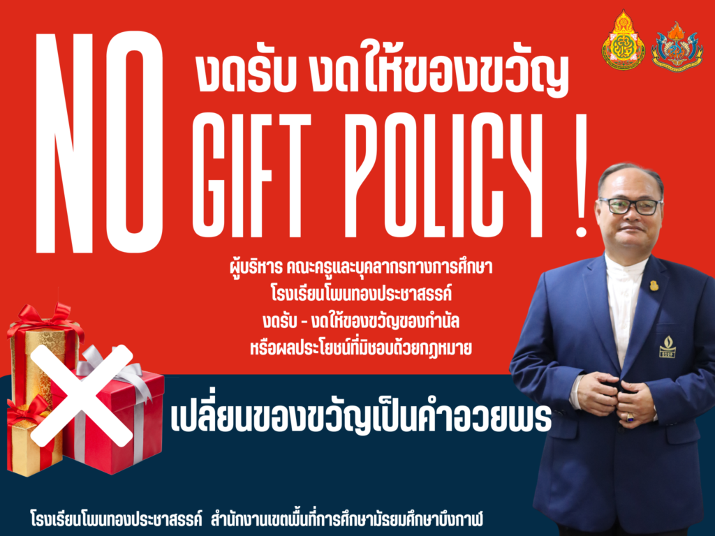ประกาศเจตนารมณ์ นโยบาย No Gift Policy จากการปฏิบัติ หน้าที่ ภาษาไทย ประกาศเจตนารมณ์ นโยบาย No Gift Policy จากการปฏิบัติ หน้าที่ ภาษาอังกฤษ